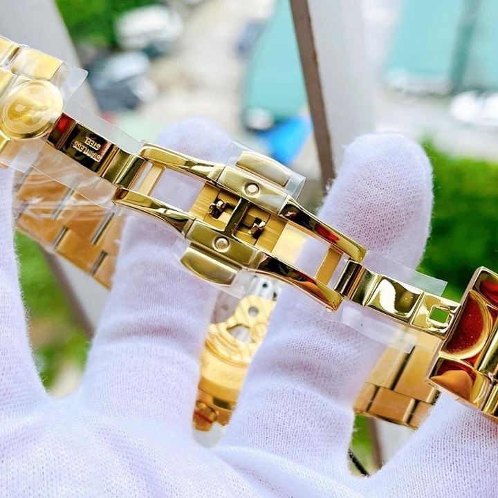Nổi bật với 30 viên kim cương ( 12 viên tại cọc số, 18 viên còn lại được trải khắp đường viền của mặt phụ small second) và đính full vỏ, dây hơn 400 viên đá sapphire đầy sang trọng với độ tinh xảo cao.