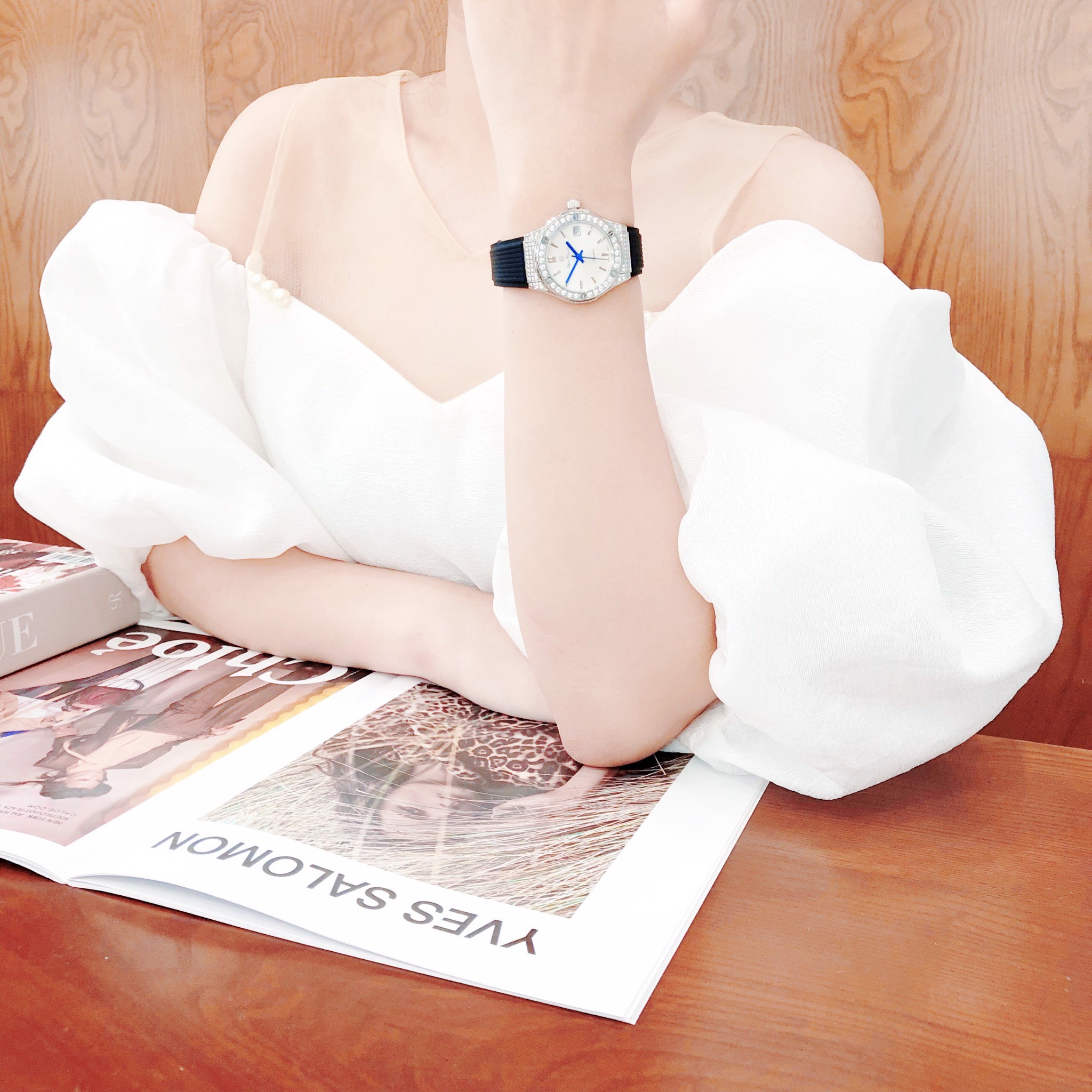 Viền đá siêu sáng, mặt số cùng tone dây cực đẹp